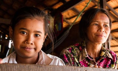 10-year-old Ly and her mother sitting inside their home in Cambodia