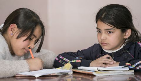 • Girls doing homework at an ActionAid partner centre in Hebron, West Bank. Photo: Sharron Lovell/ActionAid