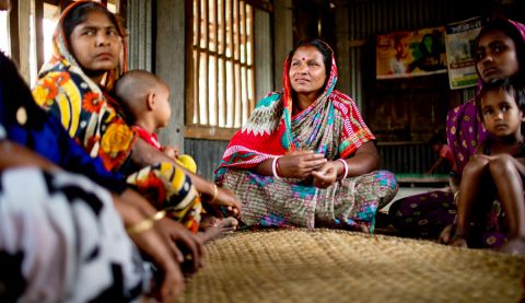 • Sabita listening and collaborating at a women's group that leads the local emergency response in southern Bangladesh. Photo: Turjoy Chowdhury/ActionAid