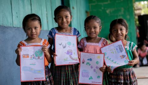 Read moreChildren hold up their pictures for their sponsors during ActionAid's annual child message collection in Jalacte, Guatemala. Photo: Karin Schermbrucker/ActionAid